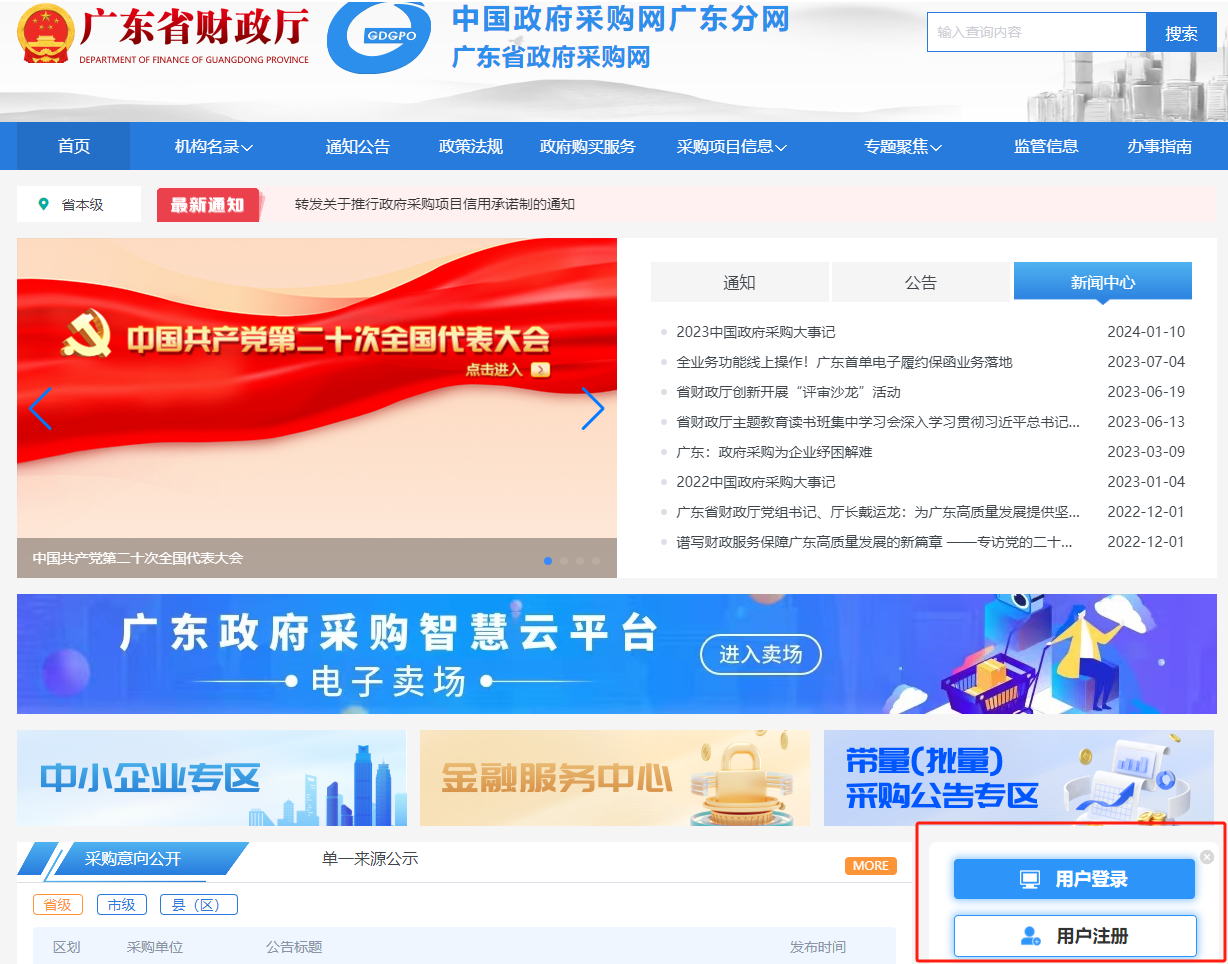 1、登錄廣東省政府采購網(wǎng)
